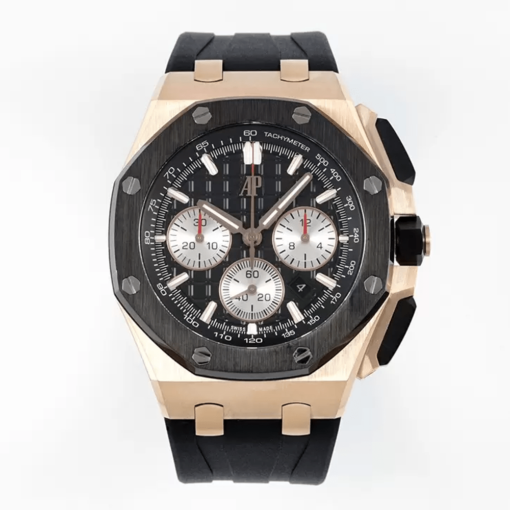 오데마피게 로얄오크 오프쇼어 크로노그래프 블랙 다이얼 RG 세라믹 블랙 러버 밴드 44mm 26420