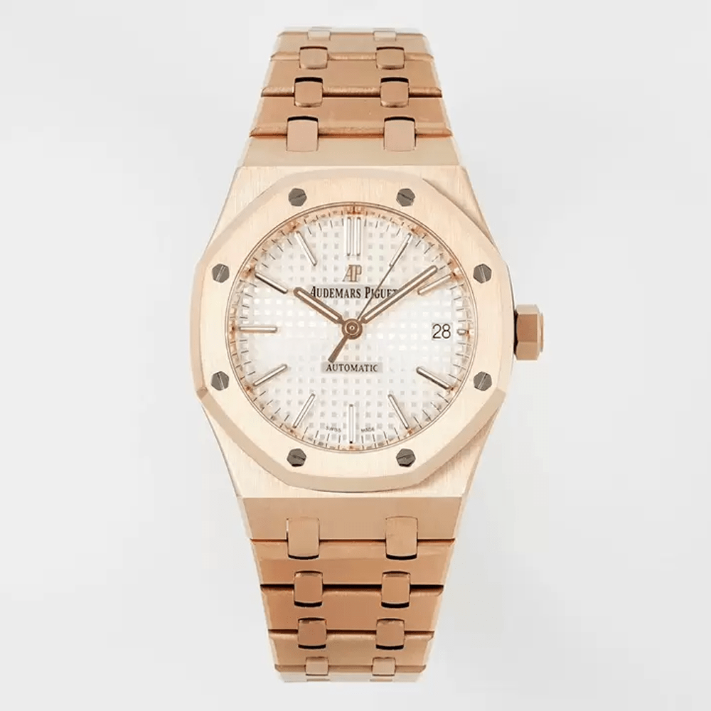 오데마피게 로얄오크 화이트 텍스처 다이얼 로즈골드 금통 37mm 15450