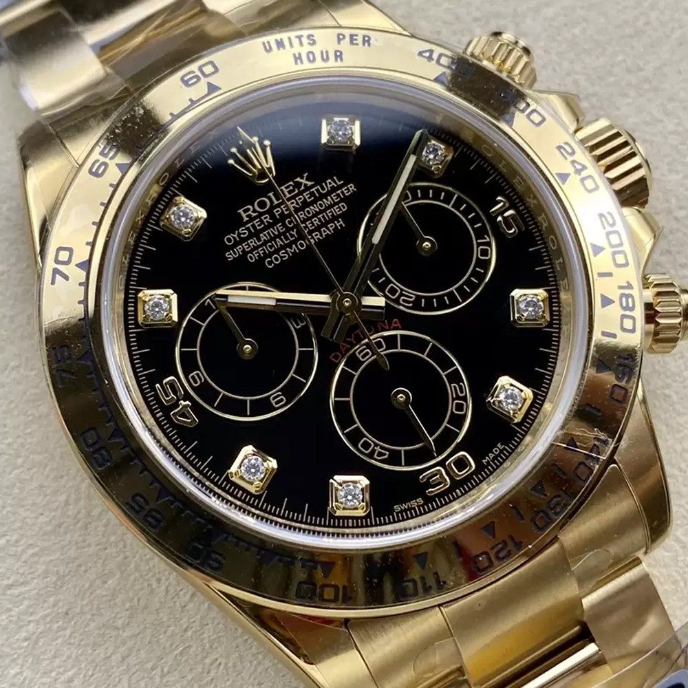 롤렉스 데이토나 크로노그래프 검판 다이얼 8P다이아 YG 금통 40mm 116508