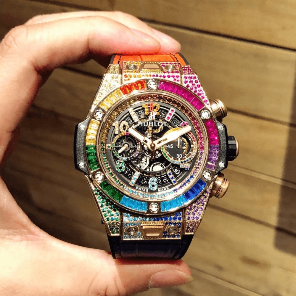 위블로 빅뱅 유니코 스텔레톤 다이얼 킹 골드 레인보우 러버 스트랩 45.5mm 441.OX.9910.LR.0999