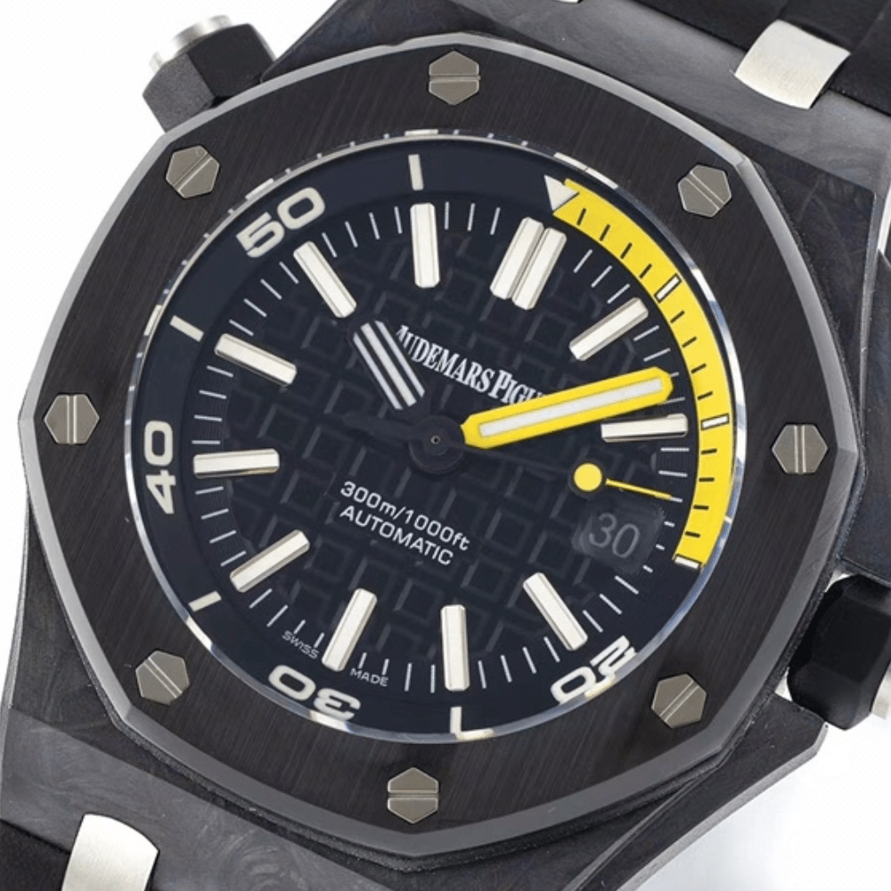 1. 클래식 스탠다드 카본 파이버 케이스, 오리지널 카본 파이버 싱크로나이즈드 소재, 오데마 피게의 특별한 팔각형 베젤, 다이얼 전체의 브러싱 처리된 질감은 단조 카본 케이스와 조화를 이루며, 오데마 피게 특유의 스타일을 그대로 담아냅니다. 단조 카본 케이스 소재는 내구성과 경량성을 모두 갖추고 있습니다. 2. 사파이어 크리스털 글라스를 사용한 시계 거울은 햇빛 아래에서 은은한 블루 라이트를 발산하여 투명도를 높이고 눈부심 방지 효과를 높였습니다.