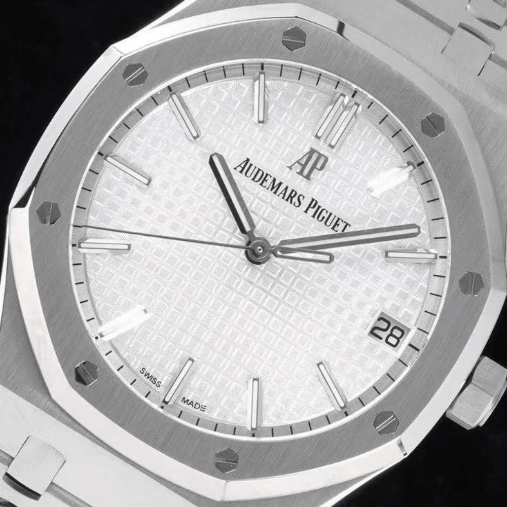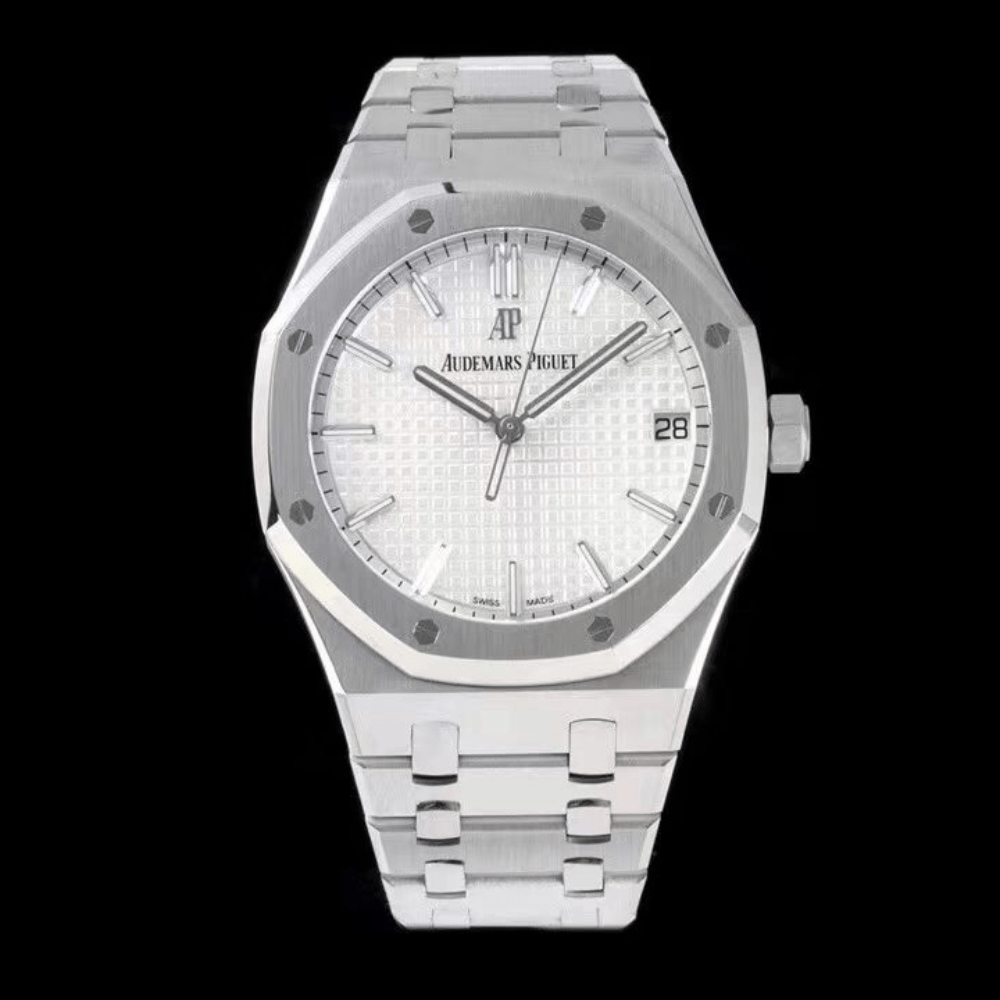 오데마피게 로얄오크 화이트 텍스처 다이얼 스틸 SS 브레이슬릿 V2 41mm 15500ST