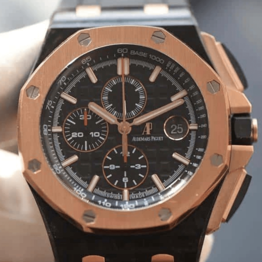 오데마피게 로얄오크 오프쇼어 퀸즈컵 한정판 블랙다이얼 로즈골드 블랙 러버스트랩 44mm 26406FR