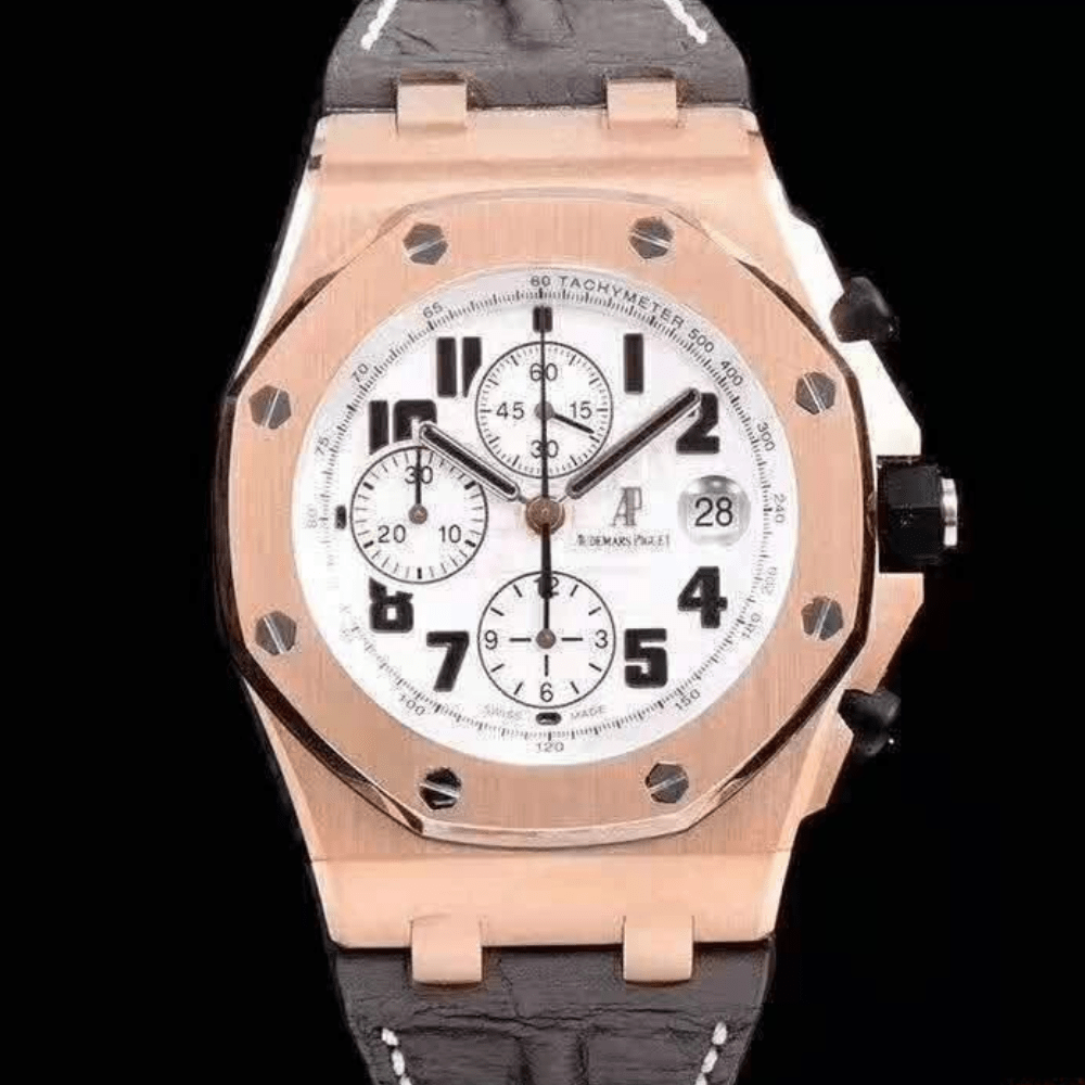 오데마피게 로얄오크 오프쇼어 화이트 다이얼 로즈골드 가죽 스트랩 42mm 26170ST