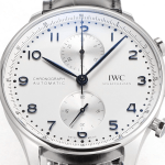 IWC 포르투기저 크로노그래프 화이트/블루 다이얼 레더 스트랩 40mm IW371604