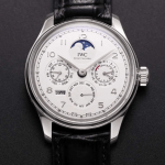 IWC 포르투기저 퍼페츄얼 문페이즈 화이트골드 화이트다이얼 레더 스트랩 41mm IW502305
