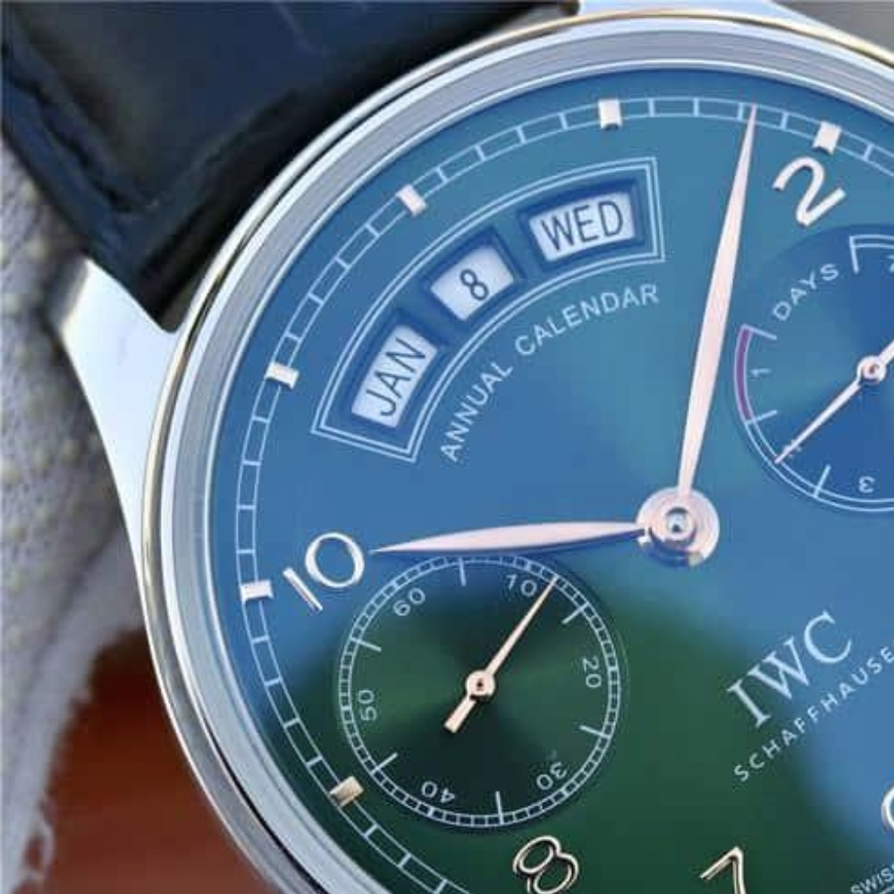 IWC 포르투기저 퍼페츄얼 캘린더 그린 다이얼 레더 스트랩 44mm IW503510