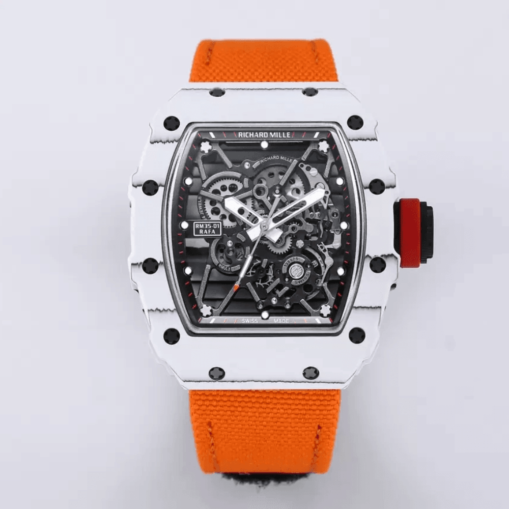 리차드밀 라파엘 나달 화이트 카본 스켈레톤 다이얼 오렌지 우븐 스트랩 RM35-01