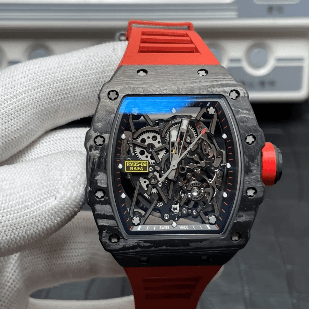 리차드밀 라파엘 나달 블랙 카본 스켈레톤 다이얼 레드 러버 스트랩 RM35-02