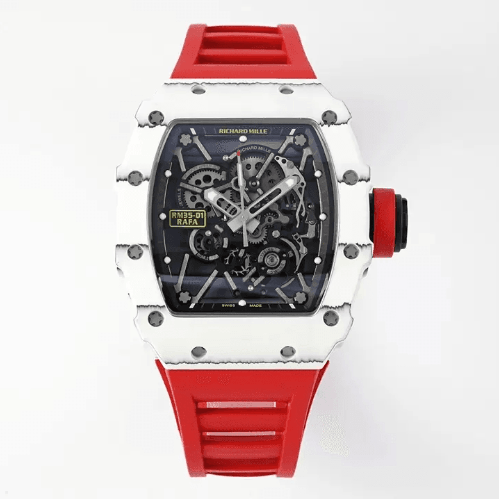 리차드밀 화이트 카본 스켈레톤 다이얼 레드 러버밴드 RM35-01