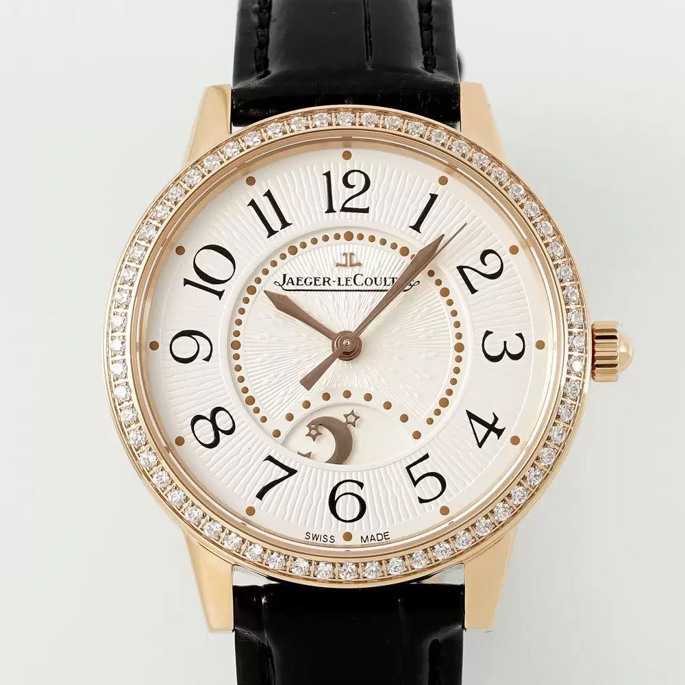 예거 르쿨트르 레이디 랑데부 클래식 나잇&데이 로즈골드 다이아베젤 레더 스트랩 34mm Q3442440