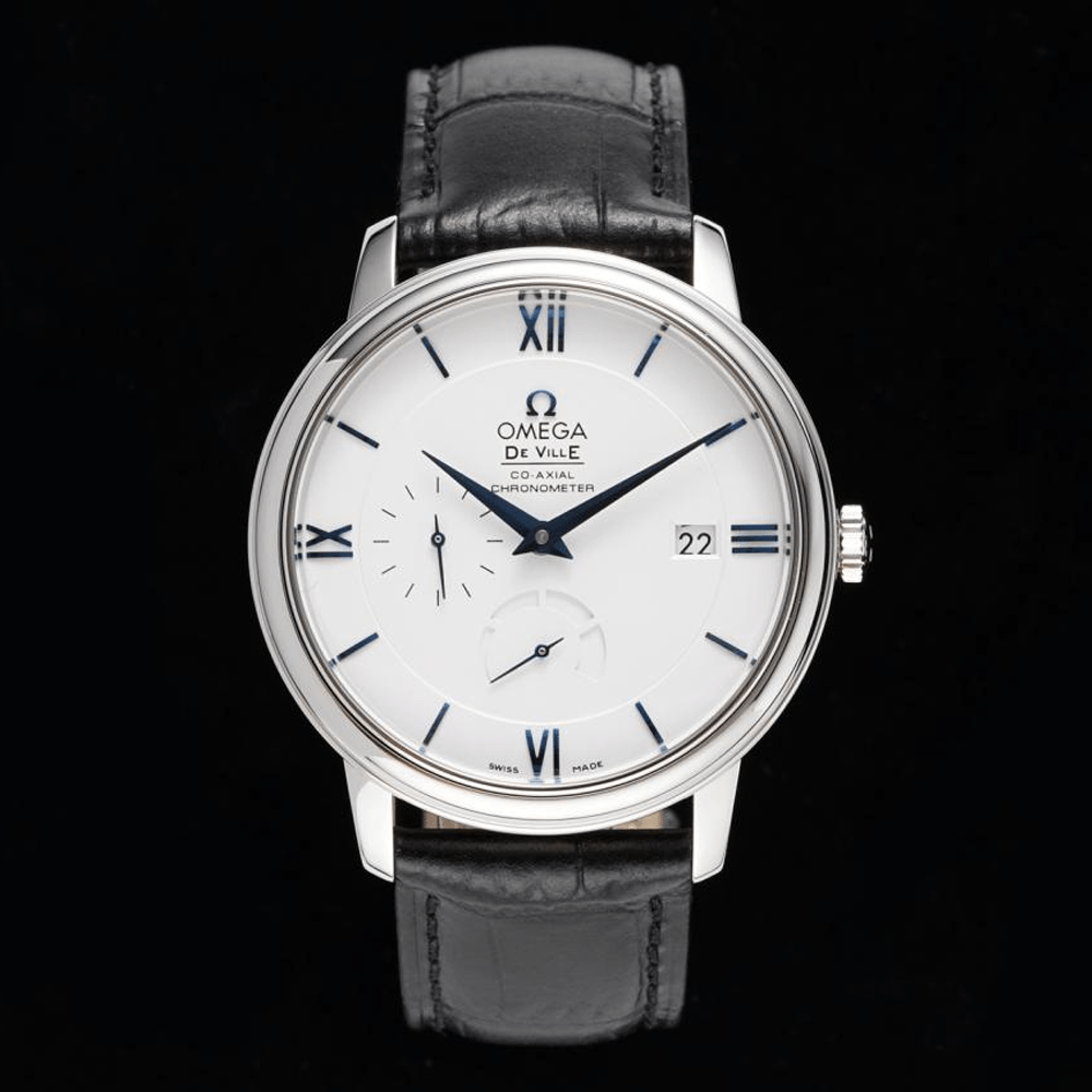 오메가 드빌 화이트 다이얼 드레스 워치 가죽 스트랩 424.53.40.21.04.001