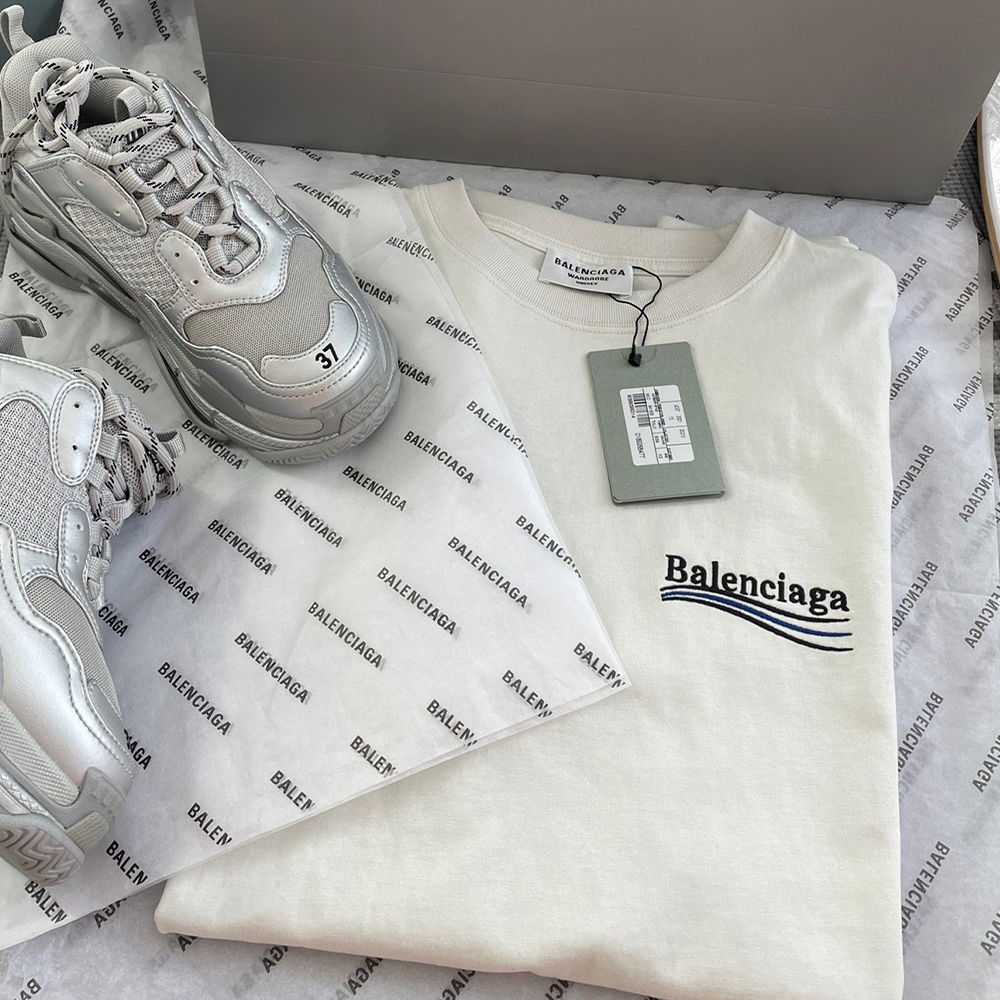 발렌시아가 24SS 웨이브 자수 로고 반팔 티셔츠