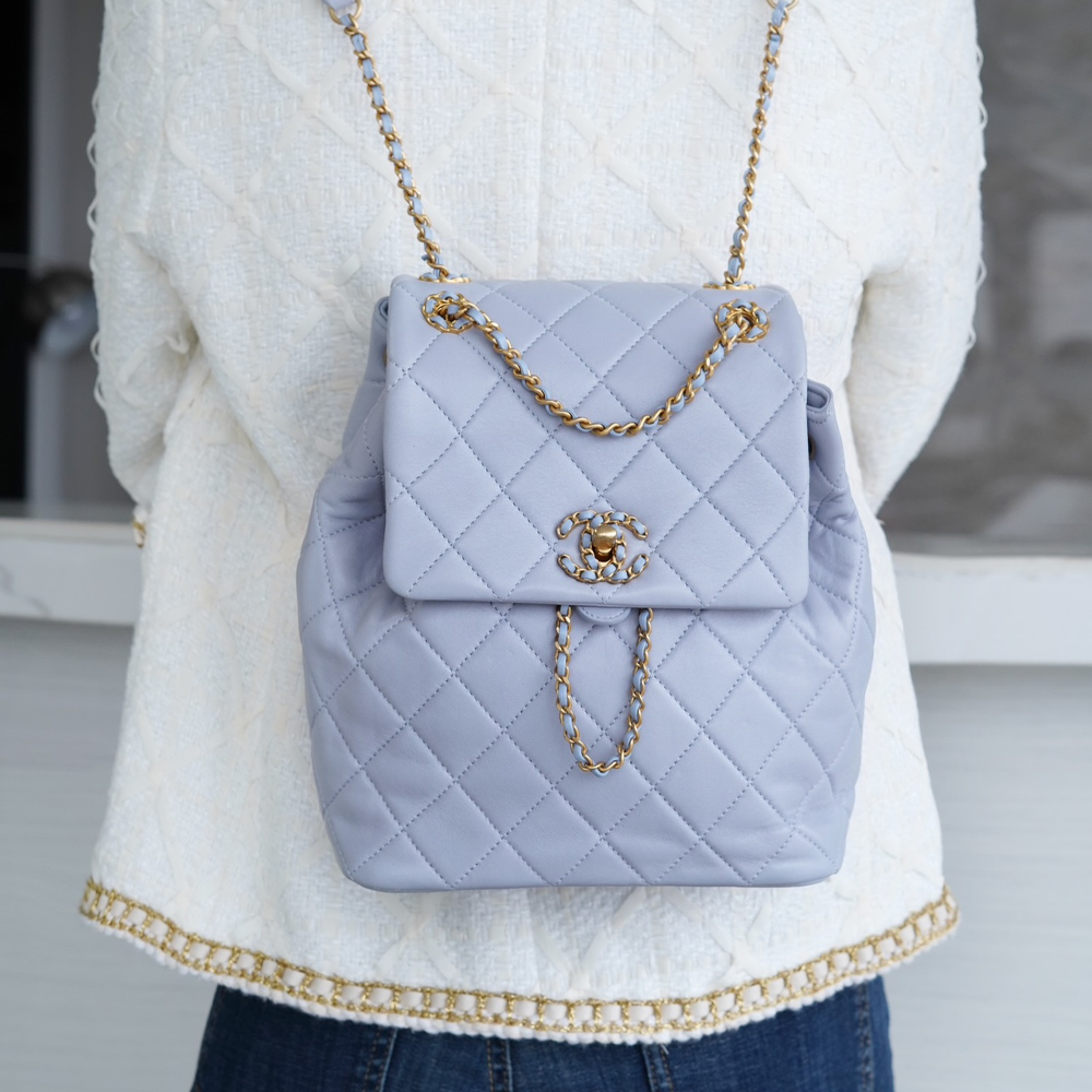 팬더샵 샤넬 19 백팩 샤이니 램스킨 라이트 그레이