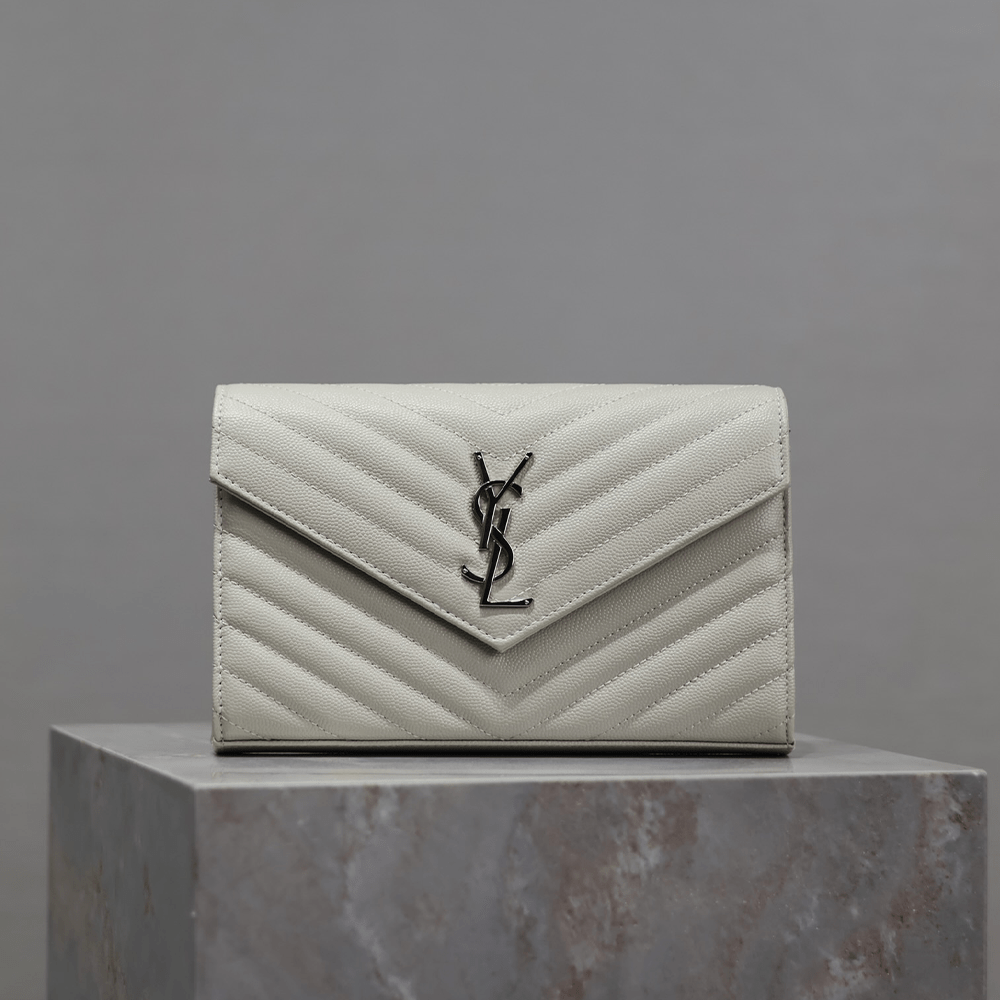 생로랑 여성 마틀라세 모노그램 체인 지갑 화이트 377828