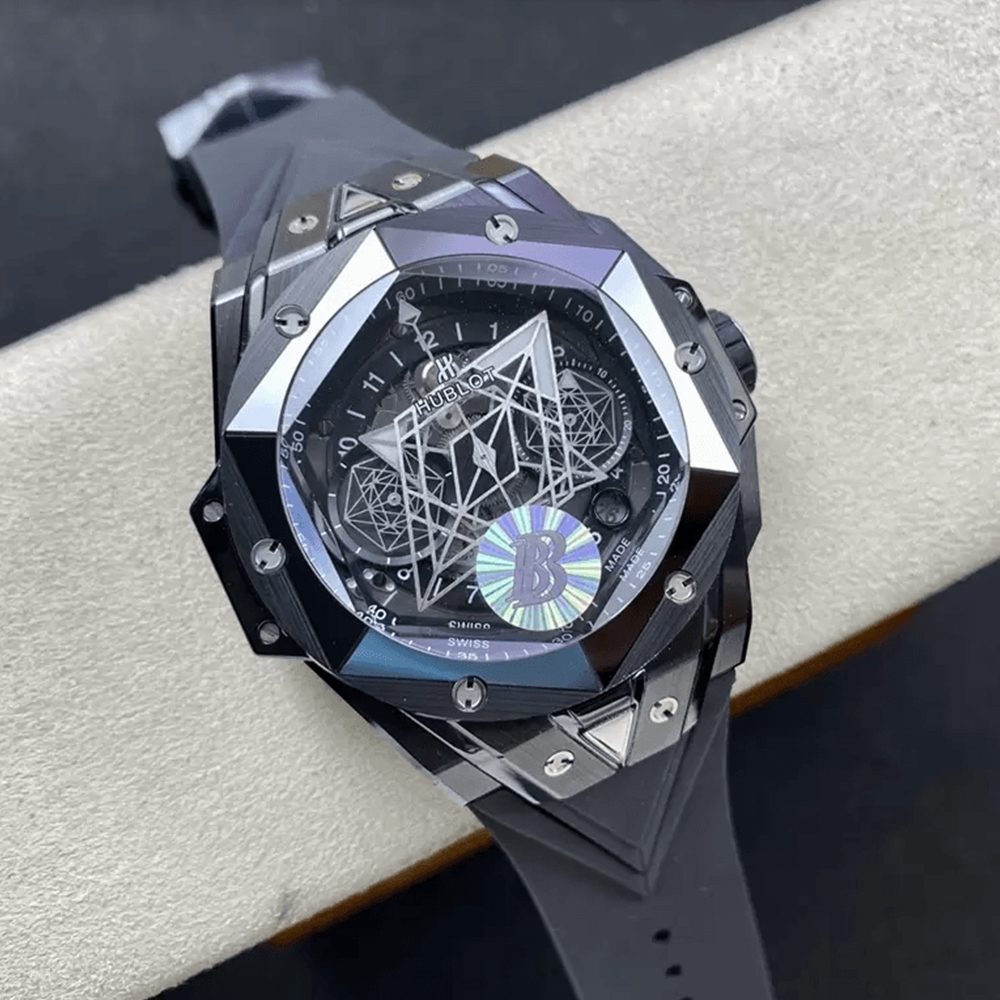 위블로 빅뱅 상 블루 II 세라믹 블랙 러버 스트랩 45mm 418.CX.1114.RX.MXM20
