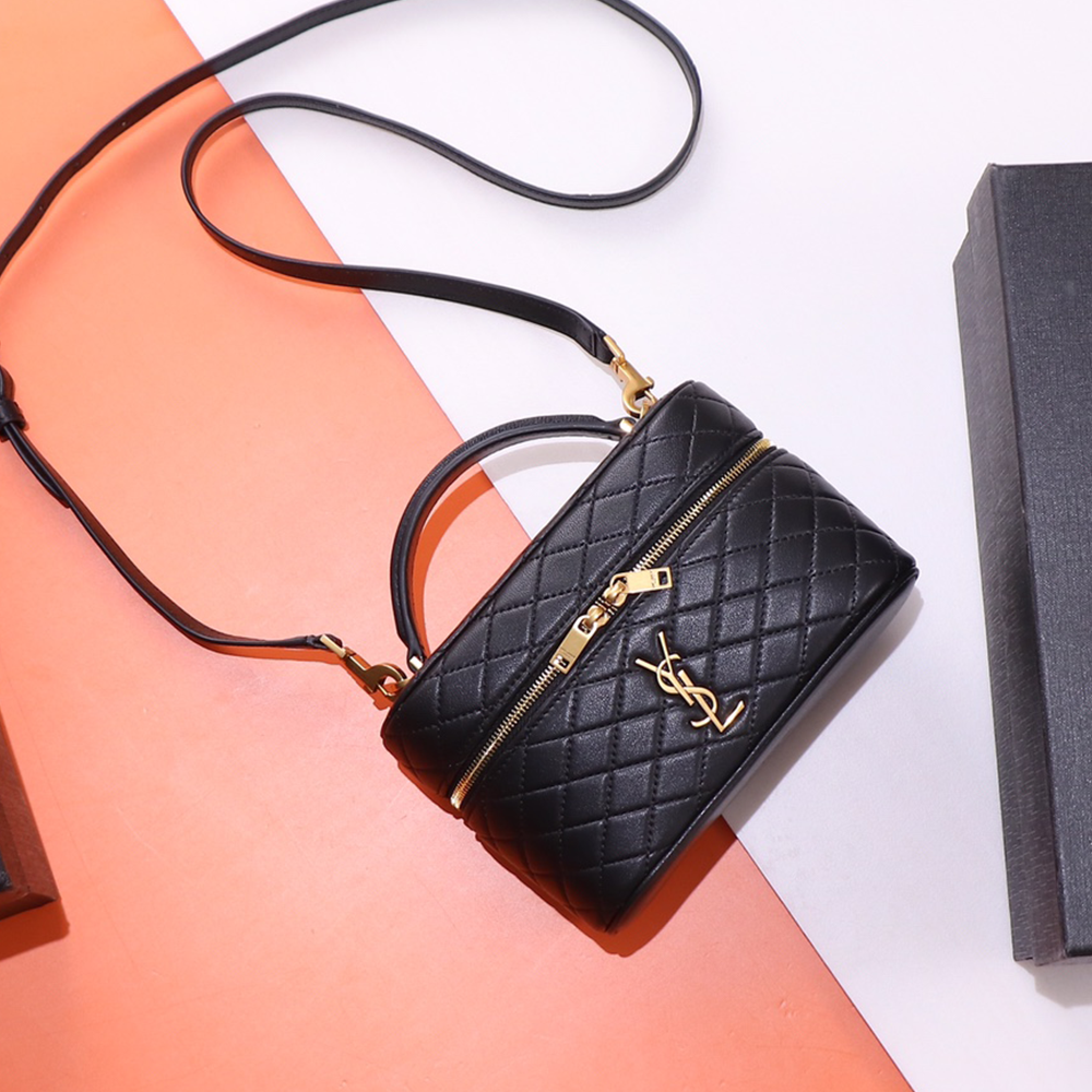 생로랑 램스킨 가비 미니 베니티 블랙 크로스백 금장