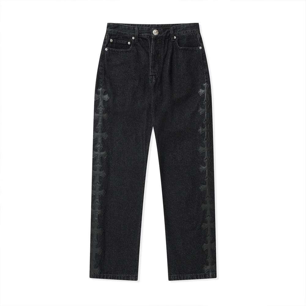 크롬하츠 사이드 가죽 패치 흑청 데님 팬츠