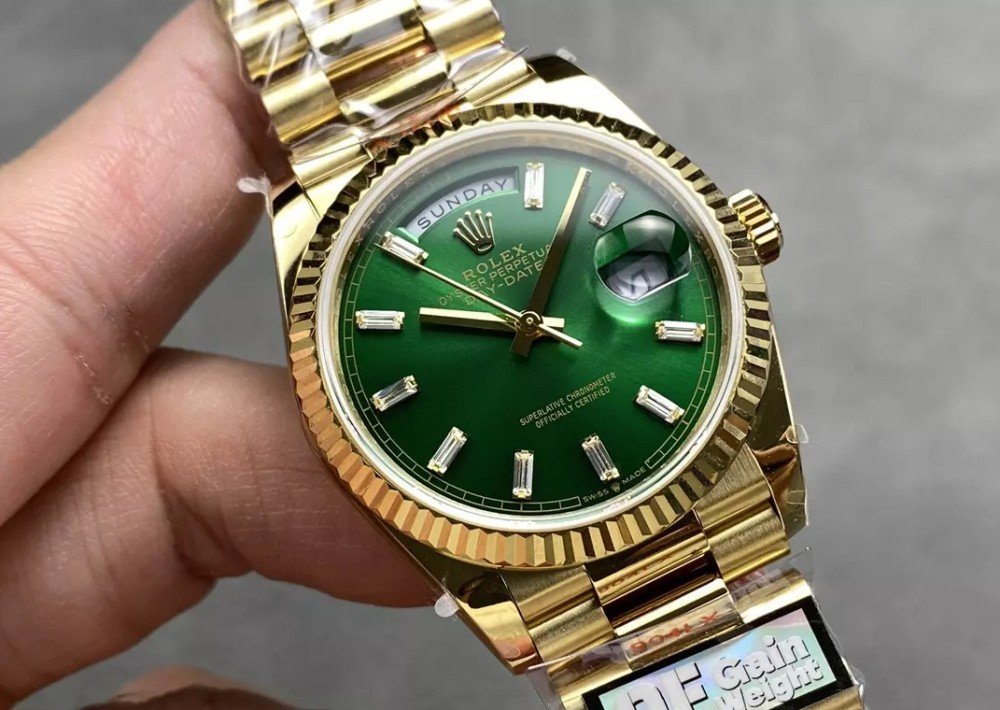v5 롤렉스 데이데이트 그린 다이얼 바게트다이아 YG 금통 36mm 128238