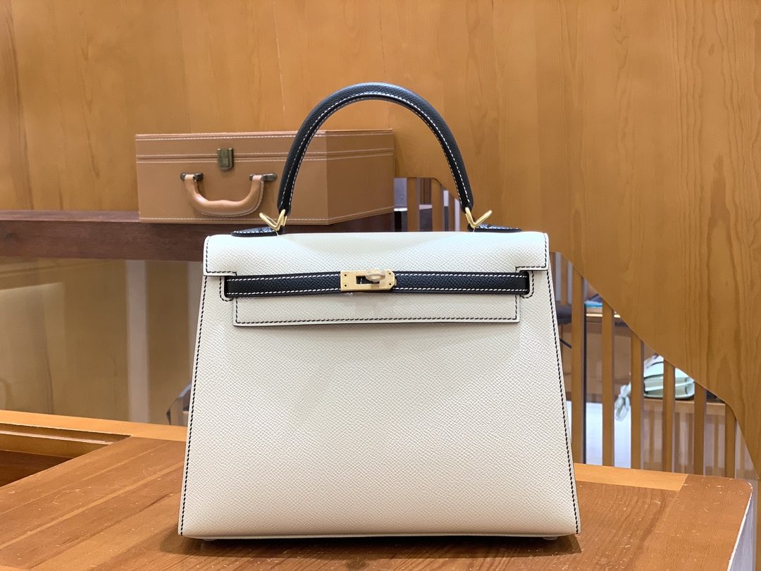 올수공 에르메스 켈리 25 엡송 밀크쉐이크 화이트 블랙 골드 버클