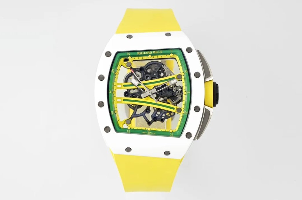 리차드밀 RM61-01 화이트 세라믹 1:1 베스트 에디션 옐로우 러버 스트랩 RMUL2