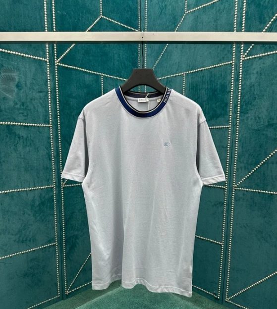 버버리 EKD 자수 넥 포인트레터링 반팔 티셔츠 라이트 블루