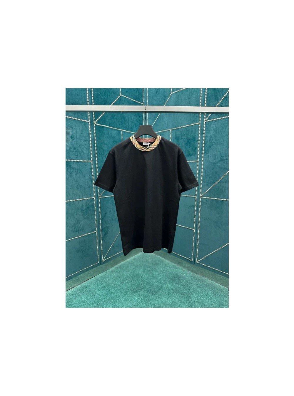 버버리 체크 트리밍 코튼 티셔츠 블랙
