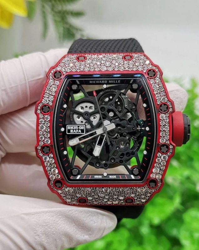 CNC 커스텀 리차드밀 라파엘 나달 레드 카본 랩 다이아 세팅 RM35-02