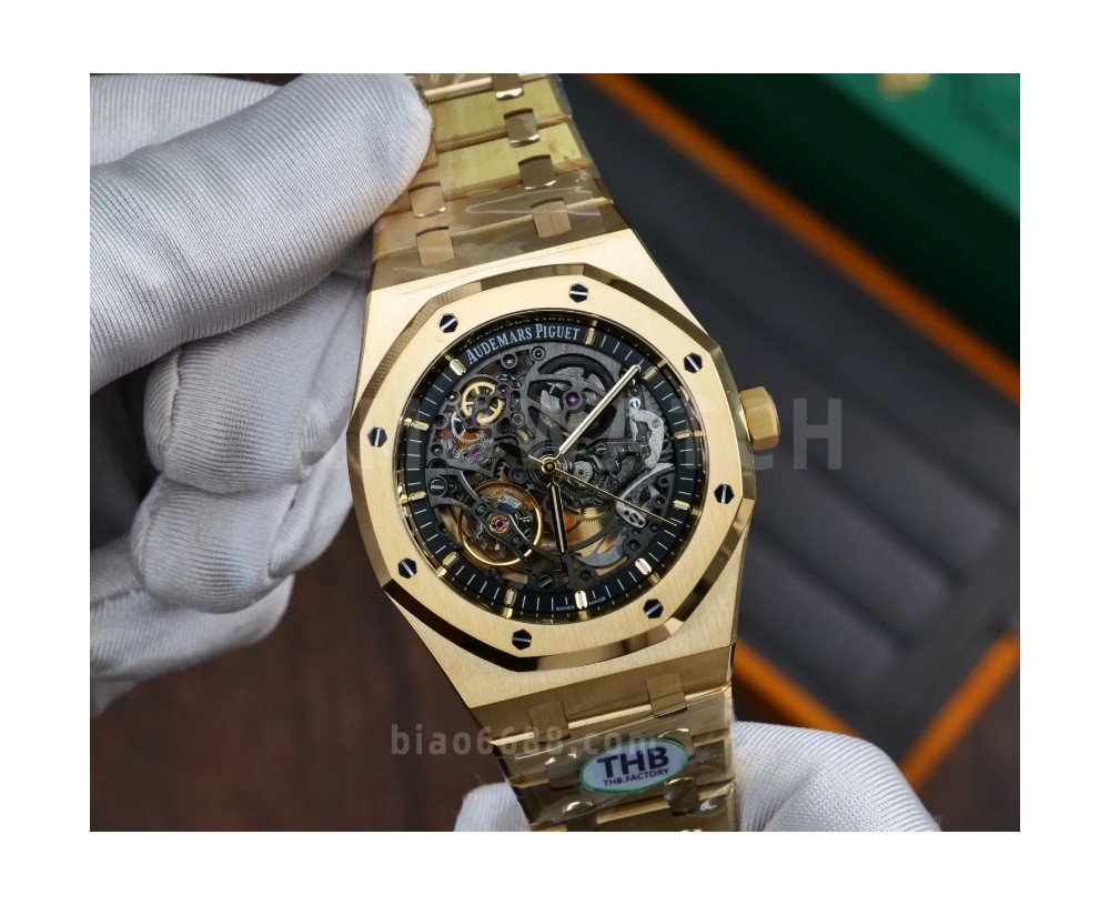 AP 로얄 오크 41mm 스켈레톤 15407 옐로우 골드 THB 팩토리 1:1 베스트 에디션 스켈레톤 다이얼, 로즈 골드 브레이슬릿 A3132 V2