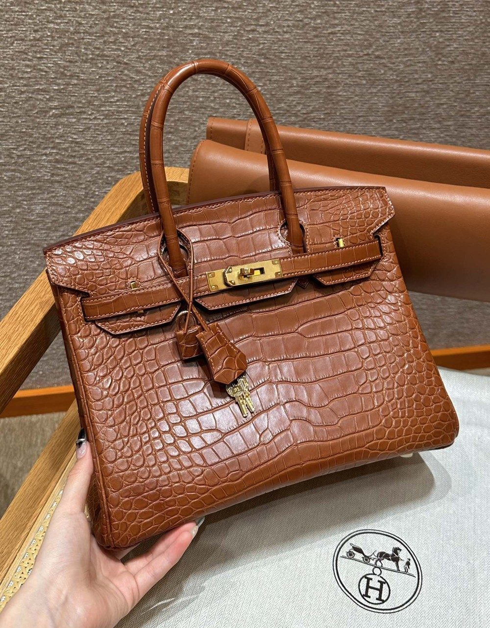 올수공 에르메스 버킨 30 Gold 악어 가죽 골드 하드웨어