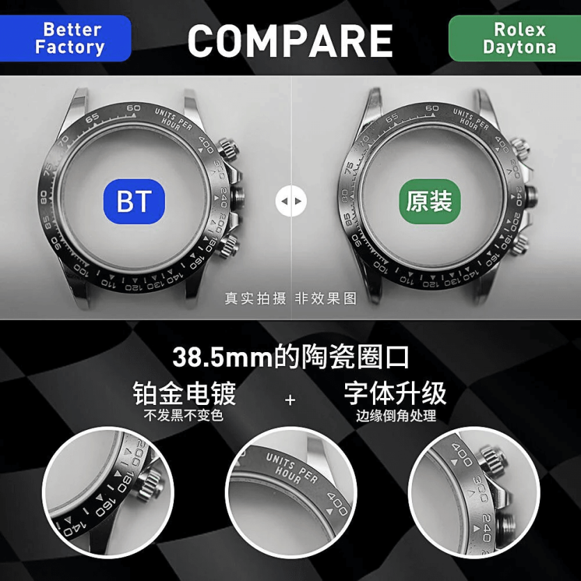 BT공장 롤렉스 데이토나 세라믹 베젤 116500 정품 비교