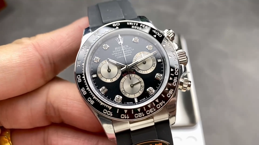 QF공장 V6 텅스텐 롤렉스 코스모그래프 데이토나 블랙 10P 다이얼 화이트 골드 러버밴드 m126515 실물영상