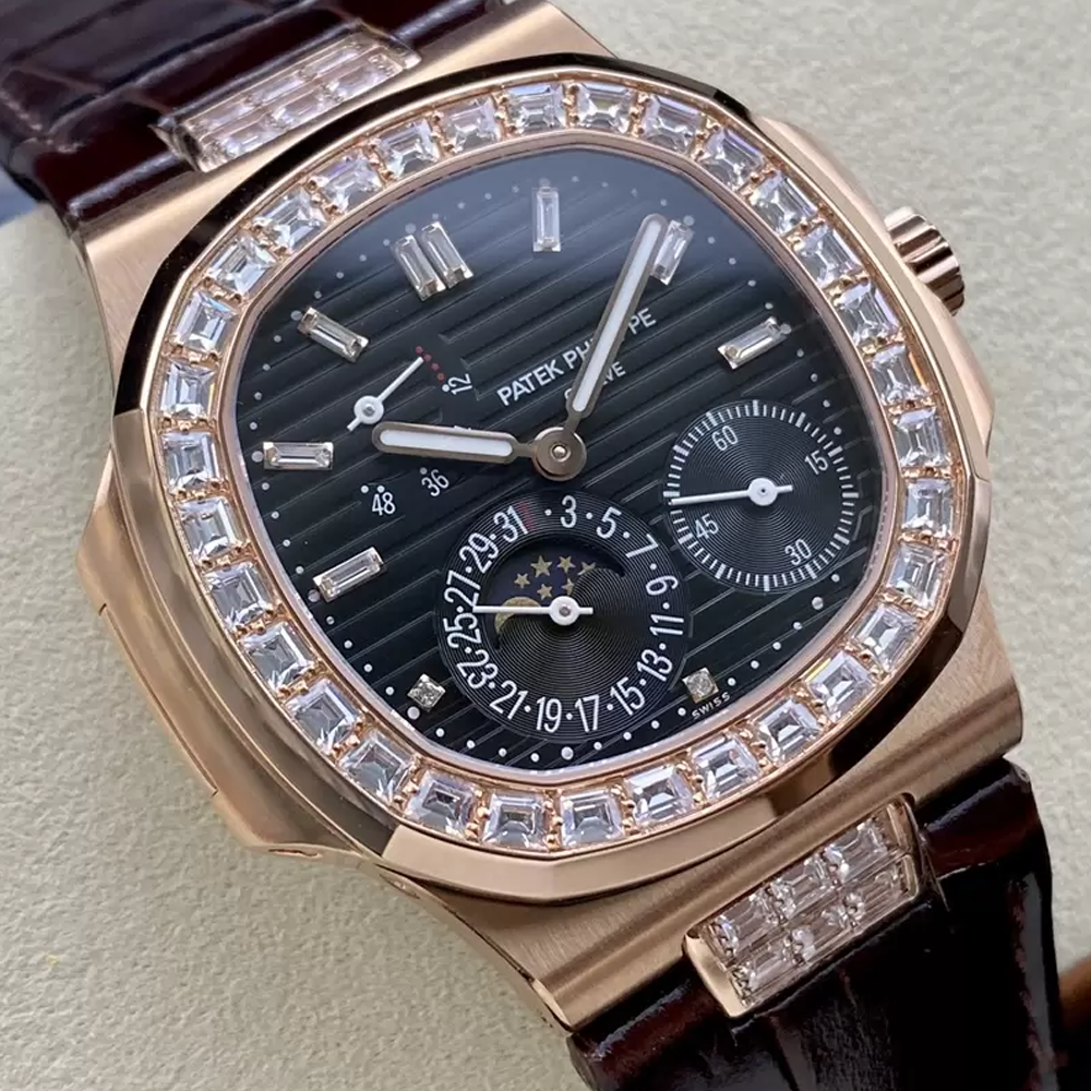 파텍필립 노틸러스 블랙 다이얼 다이아 베젤 악어가죽 스트랩 41mm 5724