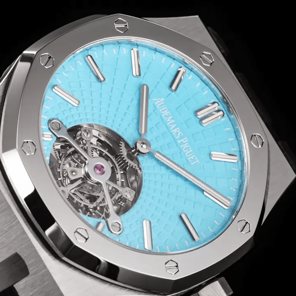 R8 공장 오데마피게 로얄오크 투르비옹 엑스트라씬 티파니 다이얼 블랙 러버 스트랩 41mm 26530