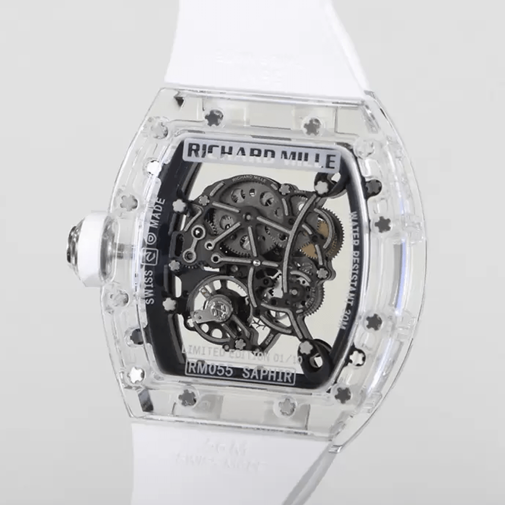 리차드밀 부바왓슨 크리스탈 스켈레톤 다이얼 화이트 러버 스트랩 RM-055