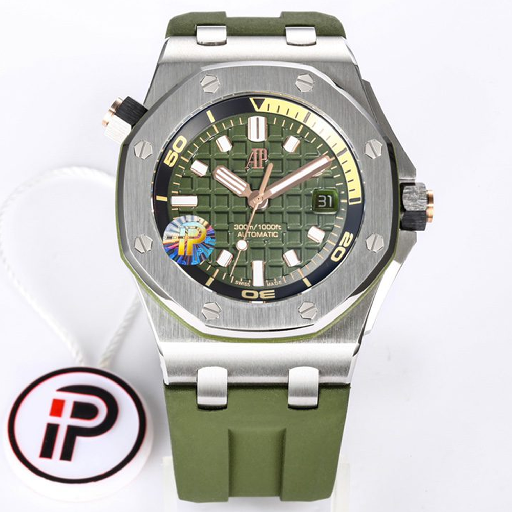 Royal Oak Offshore Diver 15720ST.OO.A052CA.01 IPF 1:1 베스트 에디션 그린 다이얼, 그린 러버 스트랩