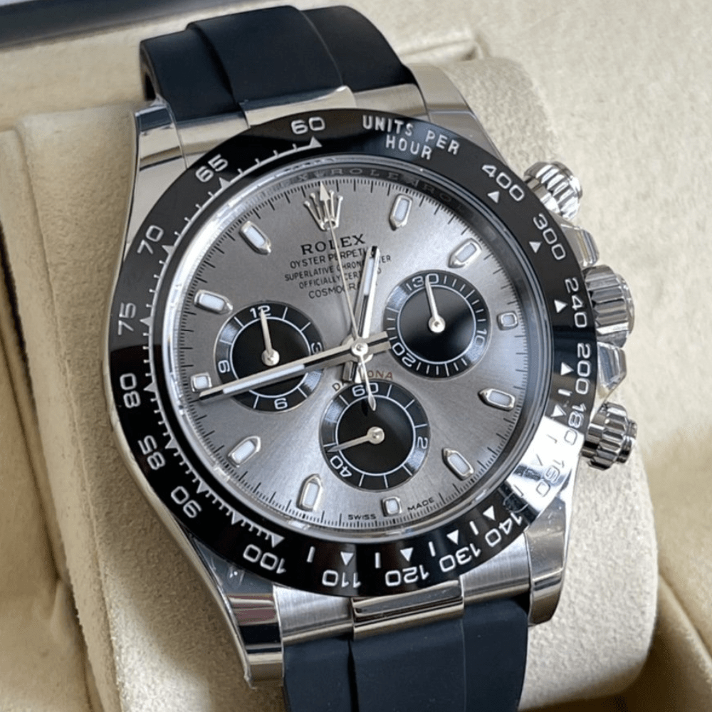 롤렉스 데이토나 크로노그래프 그레이 다이얼 인덱스바 세라믹베젤 러버밴드 40mm 116519