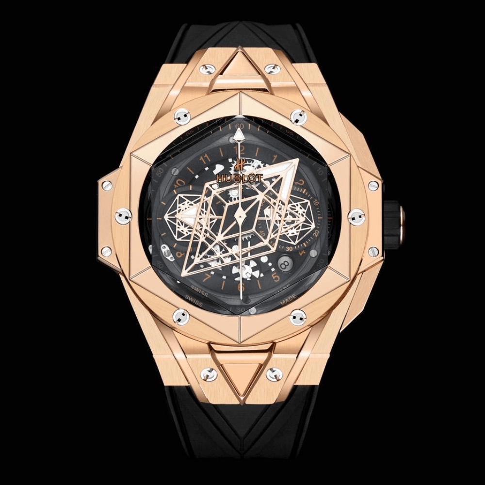 1. 직경 45mm! 그래픽 요소가 케이스를 관통하며, 커팅과 인그레이빙을 통해 육각형 베젤에 통합되었습니다. 6개의 H형 티타늄 나사가 베젤을 단단히 고정합니다. 러그는 가파른 각도와 강인한 라인으로 강렬한 디자인 감각을 선사합니다! 2.