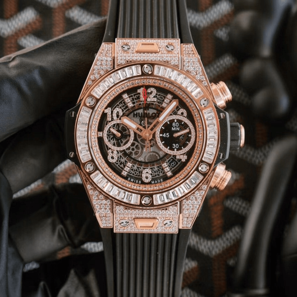 위블로 빅뱅 유니코 풀다이아 스켈레톤 다이얼 로즈골드 러버 스트랩 45.5mm 411.OX.1180.RX.0904
