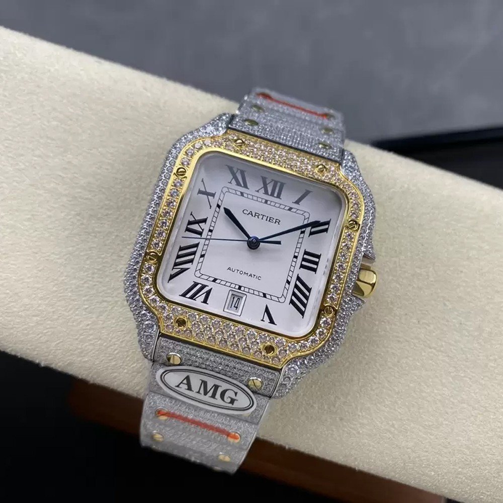 AMG 팩토리 [풀 다이아몬드 모디파이드] CARTIER 까르띠에 산토스 시리즈 스틸 스트랩 시계