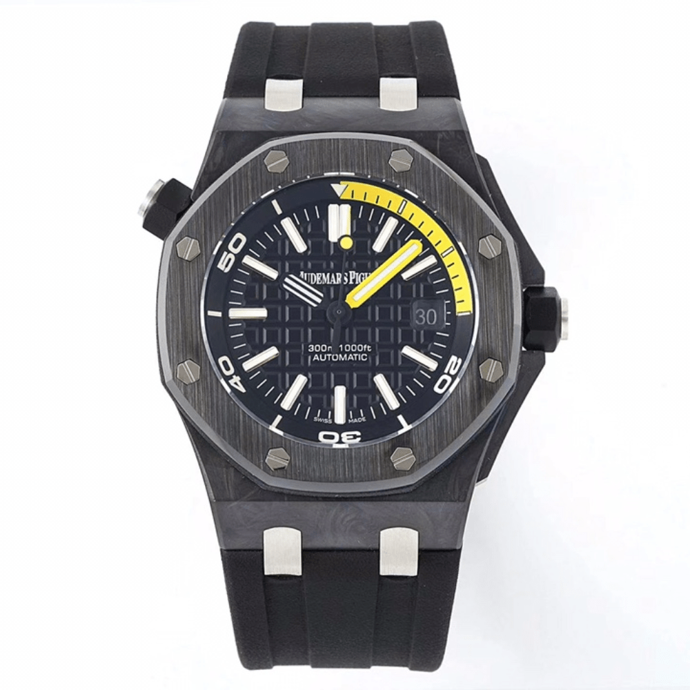 1. 클래식 스탠다드 카본 파이버 케이스, 오리지널 카본 파이버 싱크로나이즈드 소재, 오데마 피게의 특별한 팔각형 베젤, 다이얼 전체의 브러싱 처리된 질감은 단조 카본 케이스와 조화를 이루며, 오데마 피게 특유의 스타일을 그대로 담아냅니다. 단조 카본 케이스 소재는 내구성과 경량성을 모두 갖추고 있습니다. 2. 사파이어 크리스털 글라스를 사용한 시계 거울은 햇빛 아래에서 은은한 블루 라이트를 발산하여 투명도를 높이고 눈부심 방지 효과를 높였습니다.