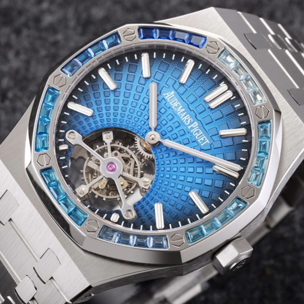 오데마피게 로얄오크 투르비옹 엑스트라씬 블루 다이얼 다이아/쥬얼 베젤 SS 브레이슬릿 V3 41mm 26521PT