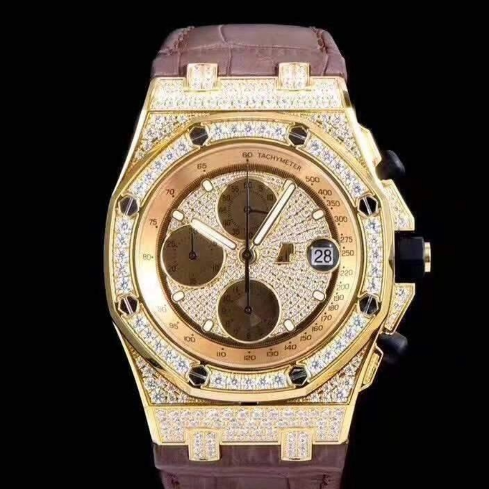 오데마피게 로얄오크 옐로우골드 풀다이아 가죽 스트랩 42mm 26067