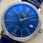 IWC 포르토피노 레이디 다이아베젤 실버 블루 다이얼 레더 스트랩 37mm IW458111