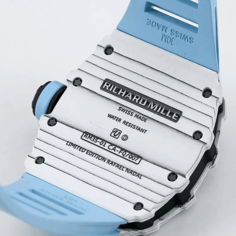 리차드밀 라파엘 나달 화이트 카본 스켈레톤 다이얼 블루 러버 스트랩 RM35-01