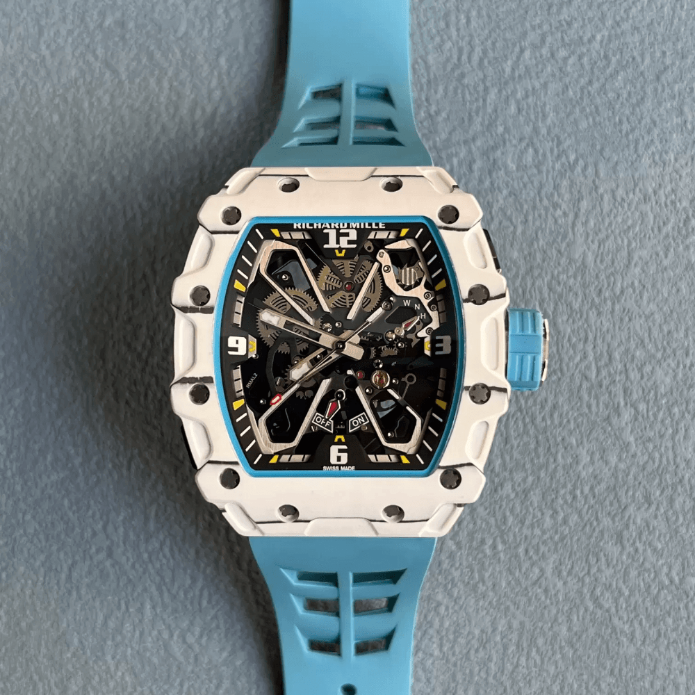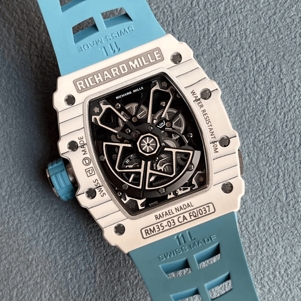 리차드밀 라파엘 나달 화이트 카본 스켈레톤 다이얼 블루 러버 스트랩 RM35-03