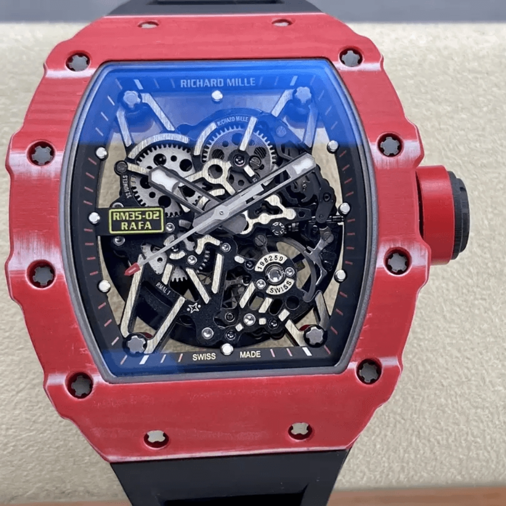 리차드밀 라파엘 나달 레드 카본 스켈레톤 다이얼 블랙 러버 스트랩 RM35-02