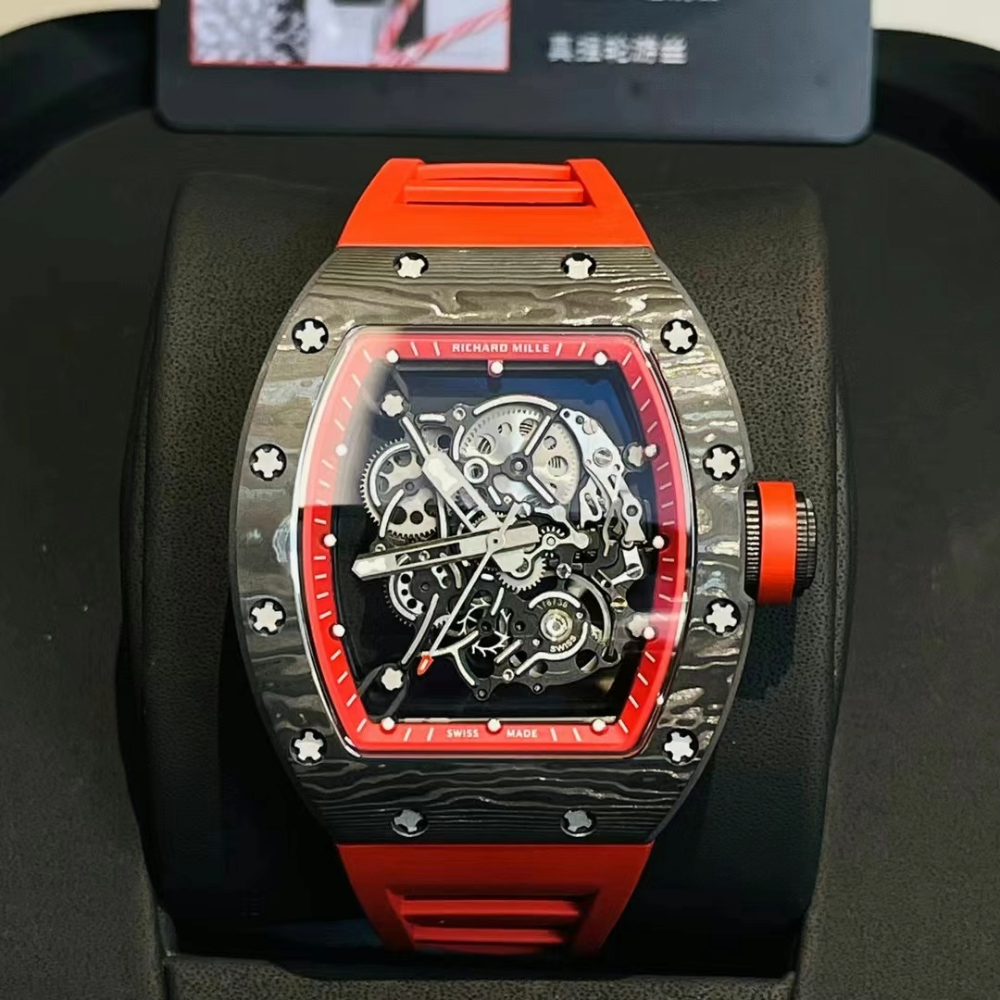 리처드 밀러 RM055 RM-055 RMF 1:1 베스트 에디션 블랙 NTPT 카본 파이버 레드 러버 스트랩 RMUL2