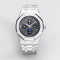 고귀한 시계 오데마 피게 로얄 오크 시리즈 퍼페추얼 캘린더 시계는 고귀하고 우아한 블루 다이얼과 시크한 스테인리스 스틸 케이스로, 오데마 피게의 미적 디자인과 복잡한 기능에 대한 첨단 기술을 완벽하게 반영합니다. 직경 11.4mm. 블루 컬러 다이얼에는 "그란데 타피세리"라는 커다란 체크무늬 장식이 새겨져 있으며, 블루 컬러 다이얼, 입체적인 아워 마커, 야광 코팅 처리된 핸즈가 특징입니다. 캘린더 기능을 보여주는 3개의 서브 다이얼과 문 디스플레이 다이얼이 다이얼에 대칭적으로 배치되어 시, 분, 요일, 날짜, 주간 캘린더, 월, 그리고 유일한 달을 순서대로 표시합니다. 사파이어 스톤의 눈부심 방지 처리로 시계 전체가 더욱 투명하고 밝게 빛납니다.