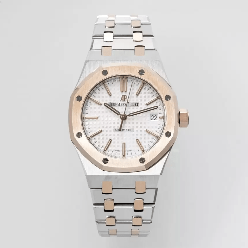 오데마피게 로얄오크 화이트 다이얼 로즈골드 콤비 37mm 15450